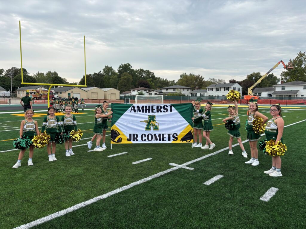 Amherst Youth Cheer provides athletes with an introduction to cheerleading fundamentals for recreational/sideline cheerleading (no tumbling). Our program is open to athletes in grades 1st – 6th in Amherst, Ohio. AYC cheers for both recreational football and basketball for the city of Amherst. Our program is designed to teach athletes cheerleading, improve team-building skills, build self-confidence, and promote fitness. AYC is open to all children who reside within the Amherst Exempted Village School District. Our program is run by volunteers who want to give back to their community.